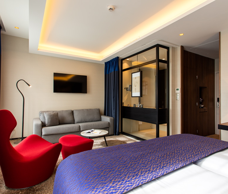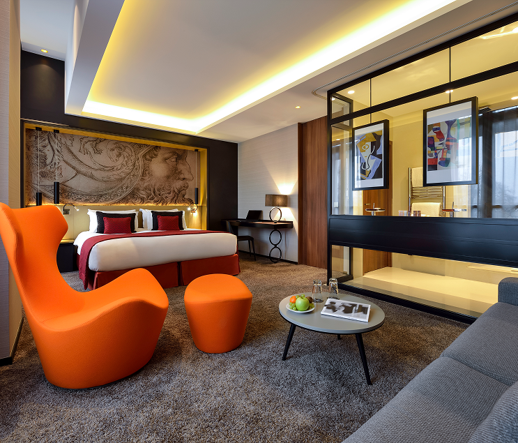 Dans la lumière tamisée, le mobilier minimaliste côtoie des œuvres inspirées des collections du Musée des Beaux-Arts. Réveil en douceur avec votre café expresso, connexion instantanée au Wi-Fi et literie moelleuse : tout est pensé pour vous offrir un véritable cocon.